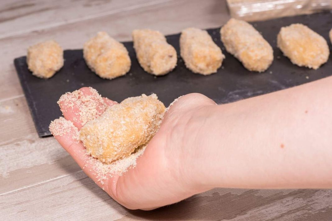 Cuando la masa esté fría, comenzamos a darle forma a las croquetas. José Andrés comparte un truco para hacerlo rápidamente y con facilidad: espolvorear la mesa con harina y formar un rulo con la masa utilizando las manos. Luego, cortamos las croquetas del tamaño deseado con la ayuda de un cuchillo.