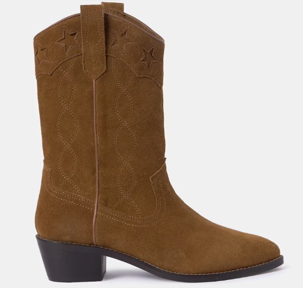Estas botas estilo cowboy son un imprescindible en tu armario. Confeccionadas en suave piel y adornadas con detalles de estrellas, combinan a la perfección el encanto del oeste con un toque chic y moderno. Son perfectas para darle un giro audaz a tus looks cotidianos, desde jeans ajustados hasta vestidos bohemios.