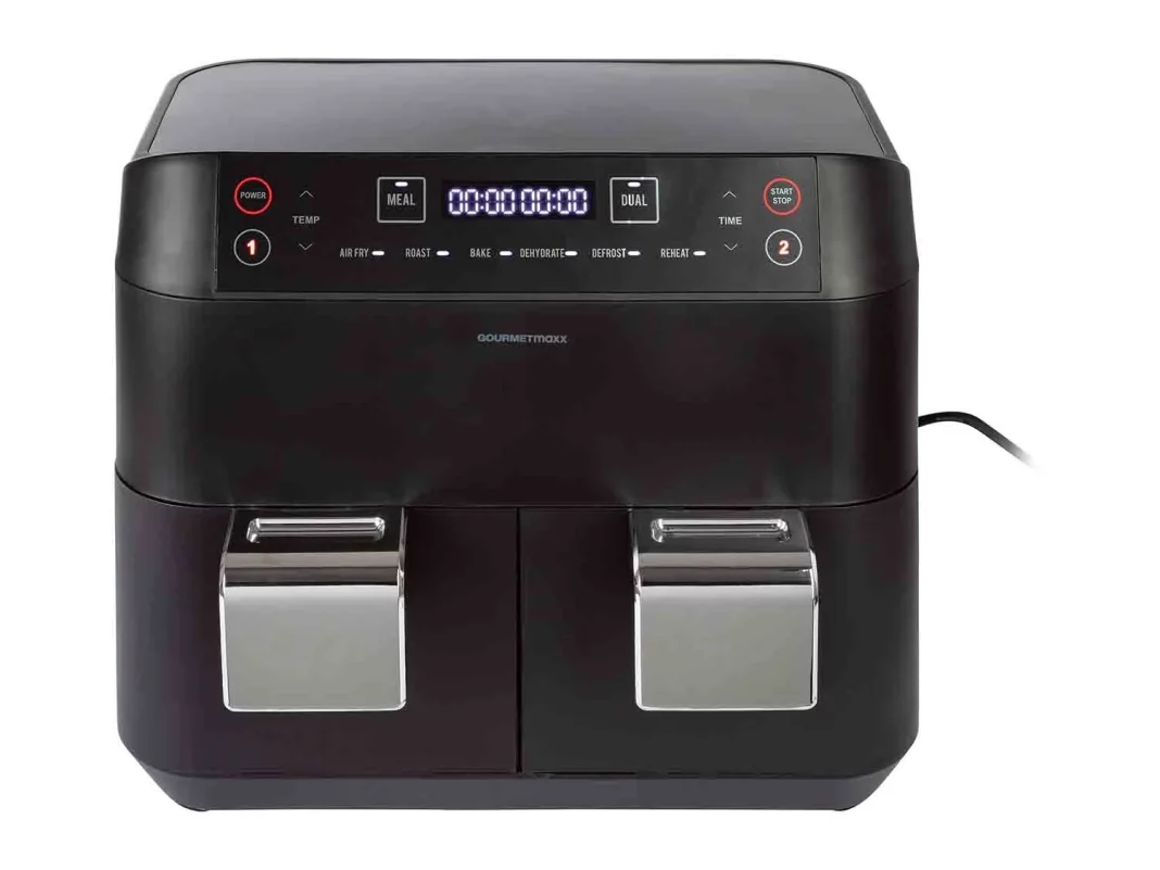 La freidora de Lidl, marca Maxxmee®, es perfecta para familias con su amplia capacidad de 7,6 L. Con una potencia de 2400 W y doble cesta de 2 zonas de cocción sincronizadas, ofrece versatilidad en la cocina. Viene con 6 programas preestablecidos y modo manual para preparar una variedad de comidas. Su circulación de aire caliente permite una cocción baja en grasa y sin olores. Además, las bandejas y cestas son aptas para lavavajillas. La función Dual facilita cocinar el doble de cantidad en el mismo tiempo. La pantalla táctil LED incluye programas como Freír (AIR FRY), Asado/guisado (ROAST), Horneado (HORNO), Deshidratación (DEHYDRATE), Descongelación (DEFROST) y Reheat (REHEAT). ¡Y ahora, aprovecha la rebaja! La freidora está disponible por 139.99 euros.