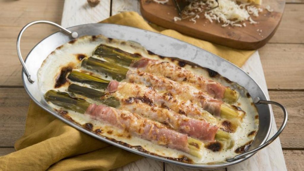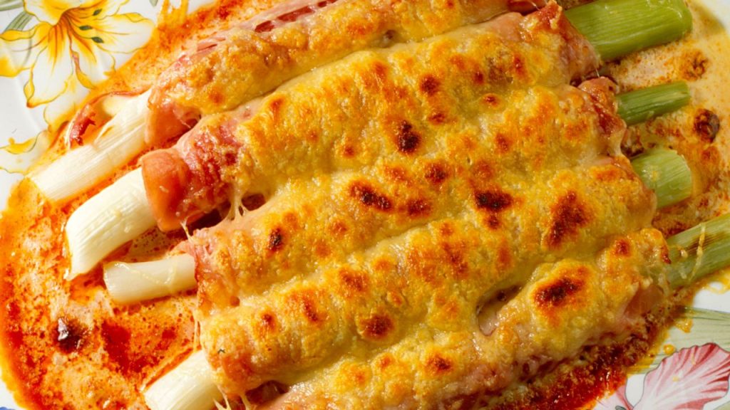 Receta de puerros gratinados con jamón y queso