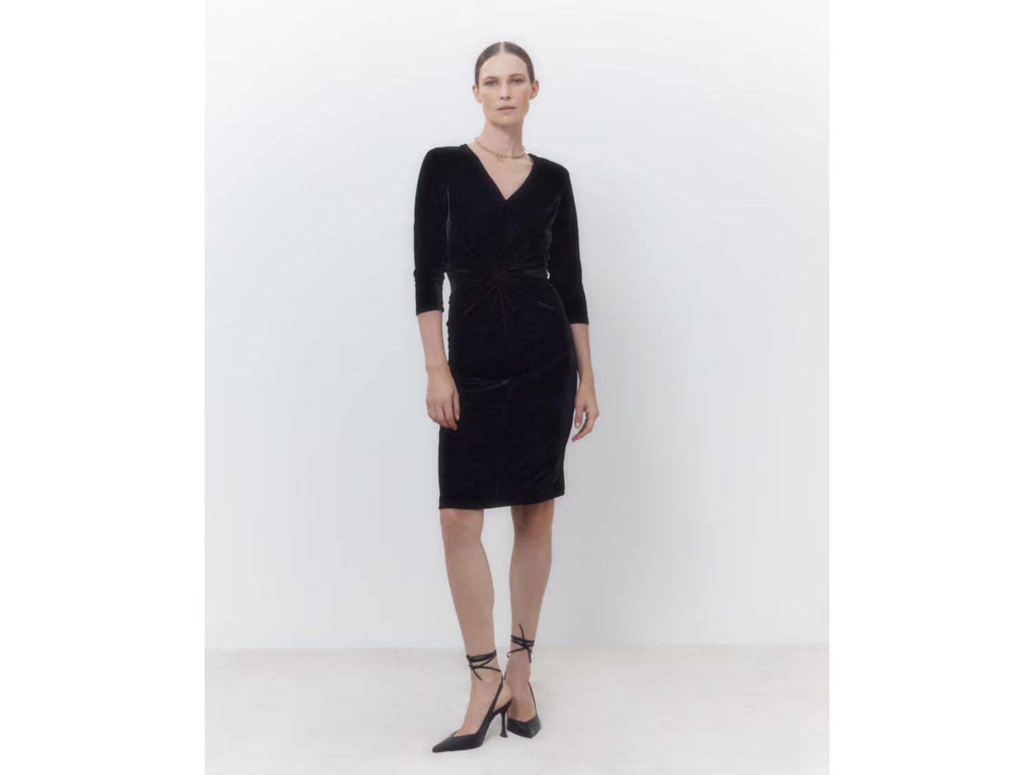 A tan solo 48,99 euros, el vestido de terciopelo negro de El Corte Inglés es una auténtica joya de la moda que irradia sofisticación. Este magnífico vestido de manga larga y cuello pico está confeccionado en terciopelo negro, un tejido lujoso que agrega un toque de elegancia innegable a la prenda. Su diseño atemporal permite su uso en diversas estaciones del año, brindando versatilidad a tu guardarropa.