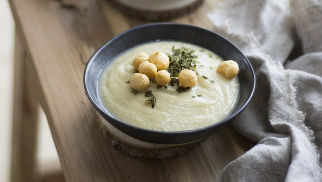 En paralelo, en una sartén con mantequilla u aceite de oliva, dora las flores pequeñas reservadas hasta que estén crujientes. Aliña con vinagre de Jerez y reserva. Tritura la crema de coliflor hasta obtener una textura fina, ajustando la cantidad de agua según prefieras. Salpimienta y sirve con las flores crujientes, cebollino picado y un toque de aceite de oliva o la mantequilla dorada de la sartén, si lo deseas.