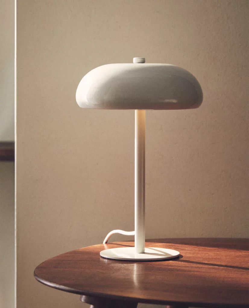 Otra de las preferidas de las clientas de Zara Home es esta original lámpara táctil de mesa inspirada en los años 60 con acabado monocolor y base más ancha en la parte baja. Un modelo que está en la web a un precio de 39,99 €. La base es un 98% acero y un 2% níquel y la pantalla de un 98% acero y en 2% níquel.