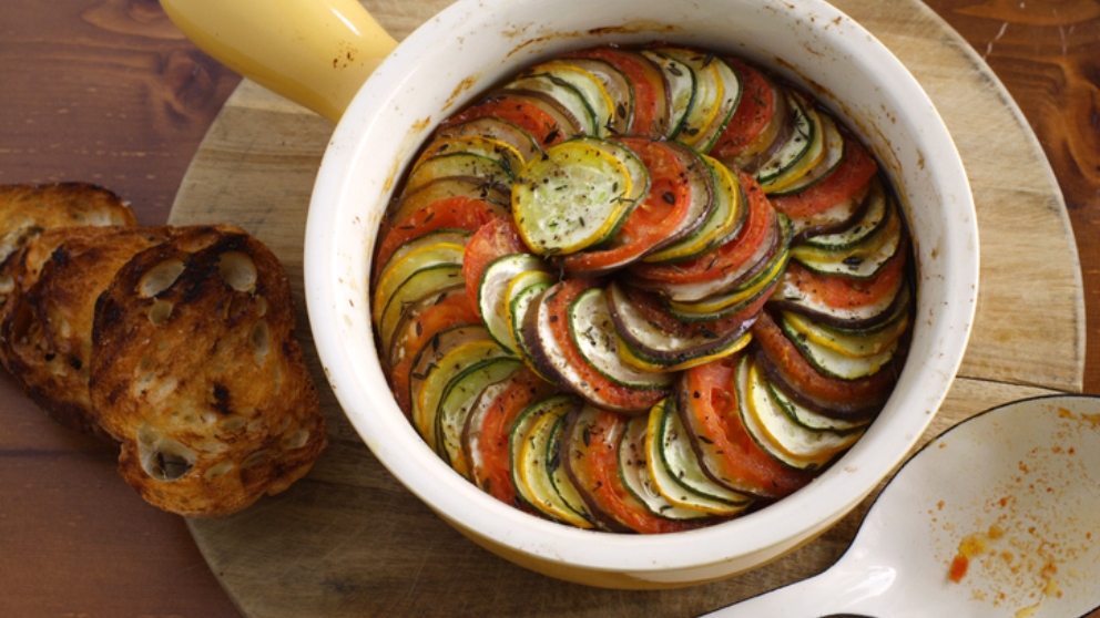 ¿Cuando escuchas «ratatouille», seguro que lo asocias inmediatamente a la película del ratón chef, ¿verdad que sí? Este plato es una especialidad de la cocina francesa, específicamente de Provenza. Lleva un montón de hortalizas como berenjena, calabacín, tomate, pimiento y cebolla, todo ello sazonado con hierbas aromáticas, y se puede preparar de diversas formas, como en cazuela, al horno o cocinando cada verdura por separado.