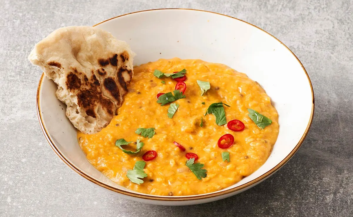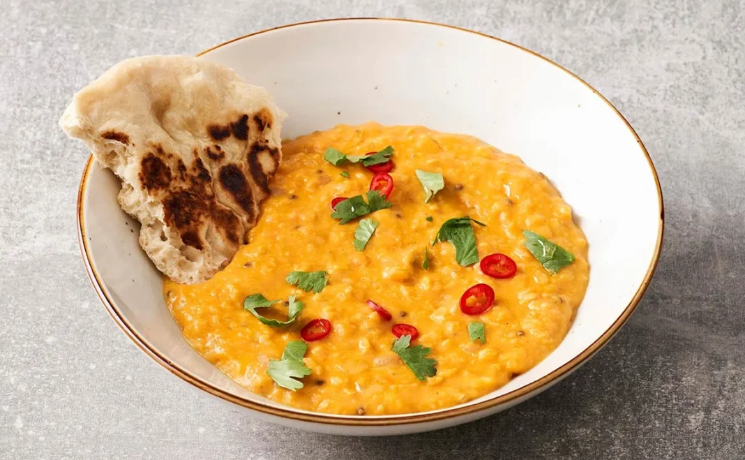 Dahl o dhal es el nombre utilizado en India para referirse a legumbres secas y a los platillos preparados con ellas. Las lentejas, destacando por su diversidad, incluyen variedades como las rojas que he utilizado, además de blancas, verdes y amarillas. Las recetas con lentejas rojas, como sopas, son rápidas de preparar y son apreciadas en diversas culturas. Una delicia cremosa y aromática, perfecta para combatir el frío, aunque es una receta originaria de climas muy cálidos. Es muy sencilla de preparar en casa, solo necesitas una cazuela y ingredientes que se encuentran fácilmente en los supermercados actuales. ¡Combínala con arroz basmati y pan naan para transportarte a la India sin salir de casa!