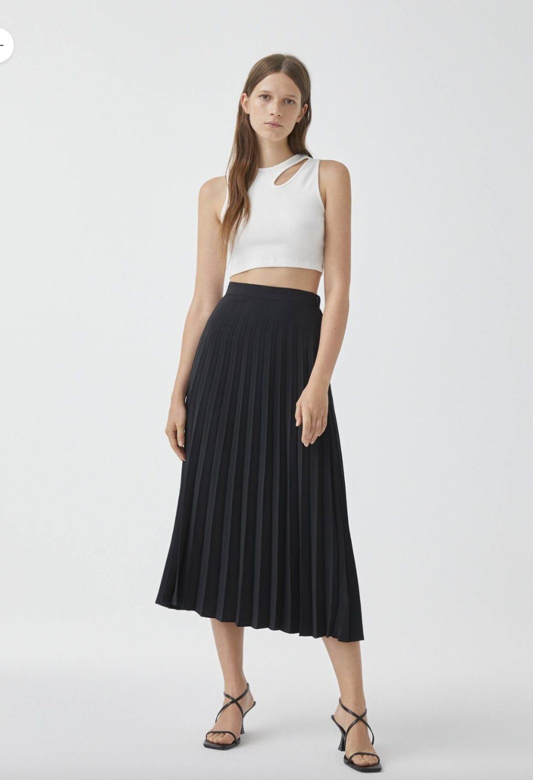 Pull and Bear tiene una sorpresa para ti esta temporada. Triunfa con elegancia y estilo con la icónica falda negra, larga y elegante de Pull and Bear. En un mundo cada vez más digitalizado, muchas marcas de moda han optado por ofrecer exclusivos productos a través de sus plataformas en línea, y esta falda no es la excepción. Diseñada en un favorecedor corte midi, con delicadas tablas y un cinturón que acentúa la cintura, esta prenda se convierte en un imprescindible en el armario de cualquier fashionista.