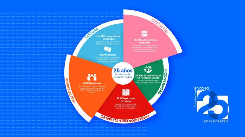 En el ámbito de la formación para el empleo se ha formado a cerca de 42.000 personas en situación de vulnerabilidad y en el de la cultura se ha acercado el arte a unas 2.000. Además, a lo largo de toda su historia, la Fundación Endesa ha iluminado más de 700 monumentos del patrimonio histórico-artístico a través de proyectos de iluminación eficiente y sostenible.