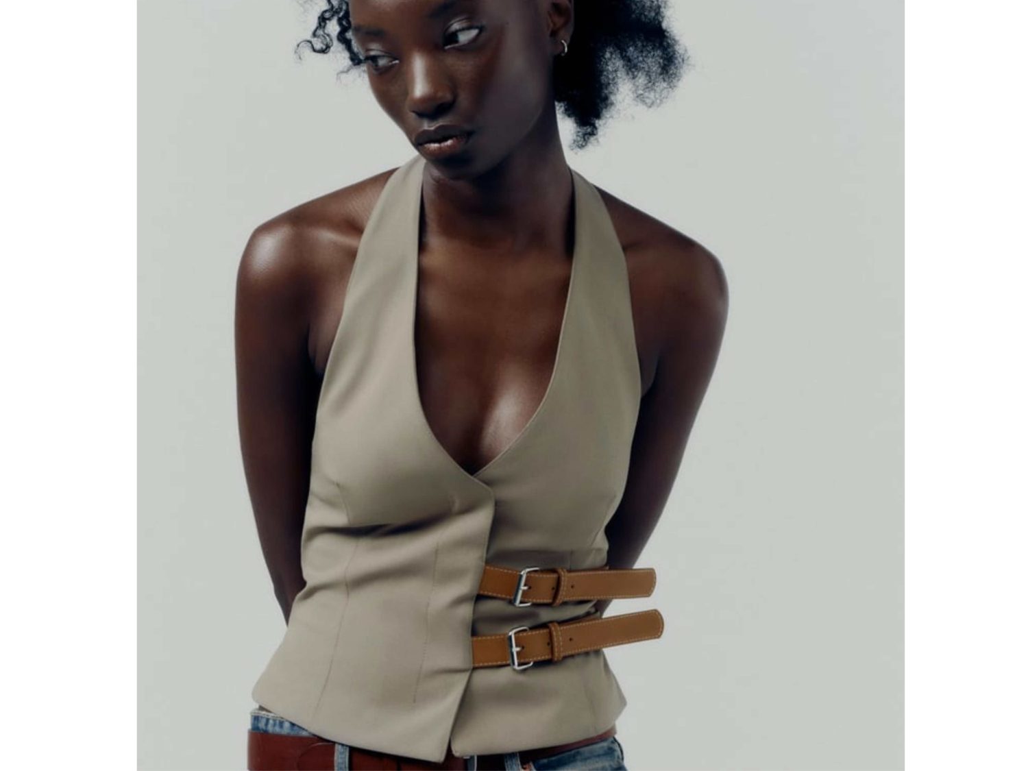 5Innovación y elegancia: Top chaleco halter con cinturones