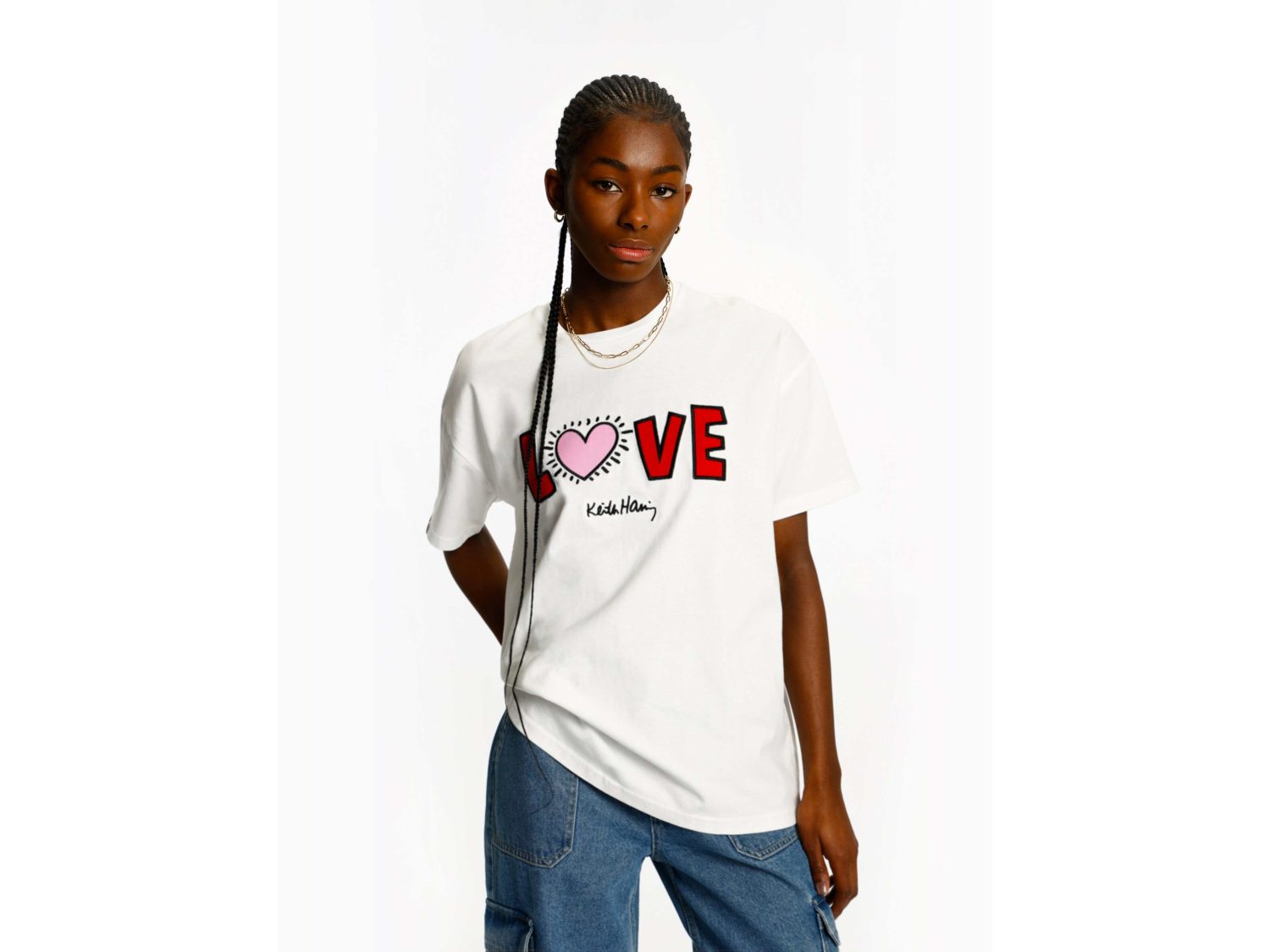 Haz una declaración de amor y estilo con la camiseta «Love» de Keith Haring por solo 9,99 € en Lefties. Esta camiseta de manga corta y cuello redondo presenta un estampado del icónico «Love» de Haring en la parte delantera, agregando un toque de arte a tu vestuario.