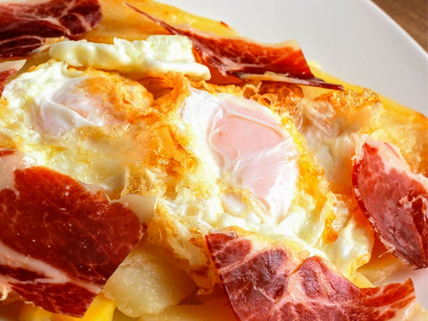Una vez escurridas y sazonadas, se reservan. En la misma sartén, con un poco de aceite, se fríen los huevos, procurando que la yema quede líquida. Finalmente, se añaden las patatas a la sartén, se rompen los huevos sobre ellas y se mezcla todo suavemente. El plato se sirve caliente, acompañado de tu elección de ingredientes, prometiendo una experiencia culinaria rica y reconfortante.