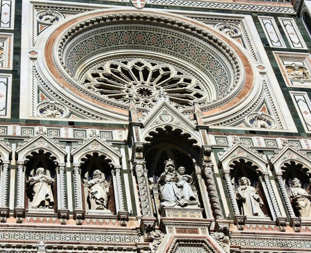 En medio de la grandiosidad del Duomo de Florencia, se esconden no solo secretos históricos, sino también detalles arquitectónicos que sorprenden por su ingenio y belleza. Uno de estos detalles es la impresionante fachada de mármol blanco y verde, que contrasta con la sobriedad del exterior de ladrillo rojo. Esta fachada, diseñada por el escultor renacentista Giovanni di Lapo Ghini, es un ejemplo magistral del estilo gótico toscano y está decorada con relieves y esculturas que representan escenas bíblicas y alegóricas.