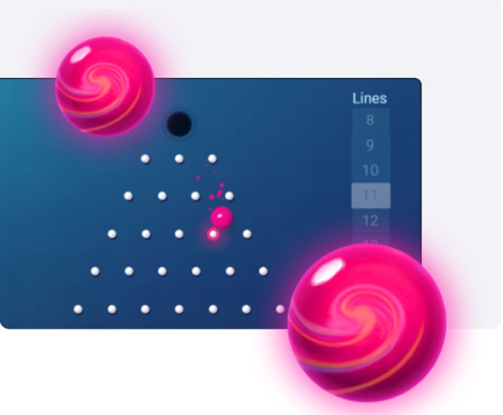 La mecánica del juego es simple y muy enganchante, además el diseño es muy original. Al abrir la tragaperras verás una pirámide hecha de líneas con las casillas en la base. Al pulsar el botón “Jugar” desde la cúspide saldrá disparada una bola, que atravesando las clavijas, llega a una casilla con el multiplicador asignado. Las ganancias se calculan: la apuesta * el multiplicador.