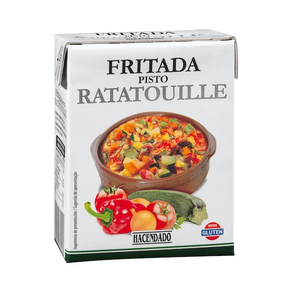 La Fritada de Pisto Hacendado está elaborada con una mezcla de pimientos rojos y verdes, cebolla, tomate y calabacín, todos ellos cortados en pequeños trozos para conseguir una textura suave y agradable en el paladar. Como último toque está sazonado con una mezcla de especias y hierbas aromáticas. Un producto de Hacendado perfecto para hacer platos que van desde guisos y sopas hasta pizzas y hamburguesas vegetarianas. La fritada de pisto se puede calentar en el microondas o en una sartén en pocos minutos.
