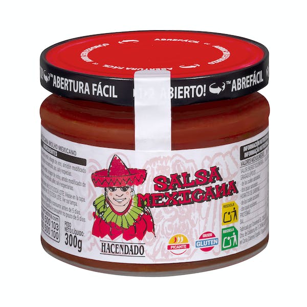 La salsa mexicana Hacendado es una salsa picante que se utiliza en la cocina mexicana para dar sabor a diferentes platos. Una salsa sabrosa y nutritiva que es una mezcla de tomate, cebolla, chile y cilantro. También contiene otros ingredientes como vinagre, sal, ajo y especias.