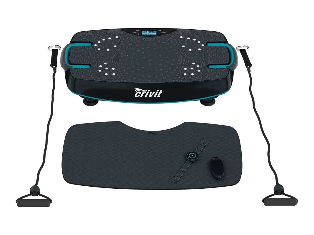 En Lidl, también puedes encontrar disponible esta plataforma vibratoria de 200 W, diseñada para ejercitar la fuerza en todo el cuerpo con ejercicios combinados. Cuenta con características como una plataforma estable antideslizante y vibración oscilante para un entrenamiento óptimo. Además, incluye 2 agarraderas integradas para flexiones, ajustables en dos posiciones, y 2 cintas elásticas que permiten una gran variedad de ejercicios. También cuenta con una función de masaje de pies gracias a los puntos metálicos de la plataforma, así como ruedas integradas para un transporte más cómodo.