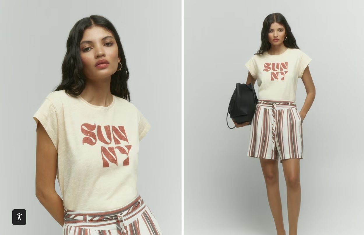 Dentro de El Corte Inglés puedes encontrar una gran cantidad de marcas con sorpresas que no te dejarán indiferente. Es el caso, por ejemplo, de Tintoretto. La marca cuenta con camisetas estampadas muy fáciles de combinar gracias a su sencillez que serán tu gran apuesta para la primavera y el verano. Así lo demuestran con opciones como esta, de color neutro, que destaca por su mensaje «Sunny» en tono contraste y cálido. Si hablamos de su precio, te puedes hacer ya con ella por 5,99 euros. Cuidado, quedan pocas unidades.