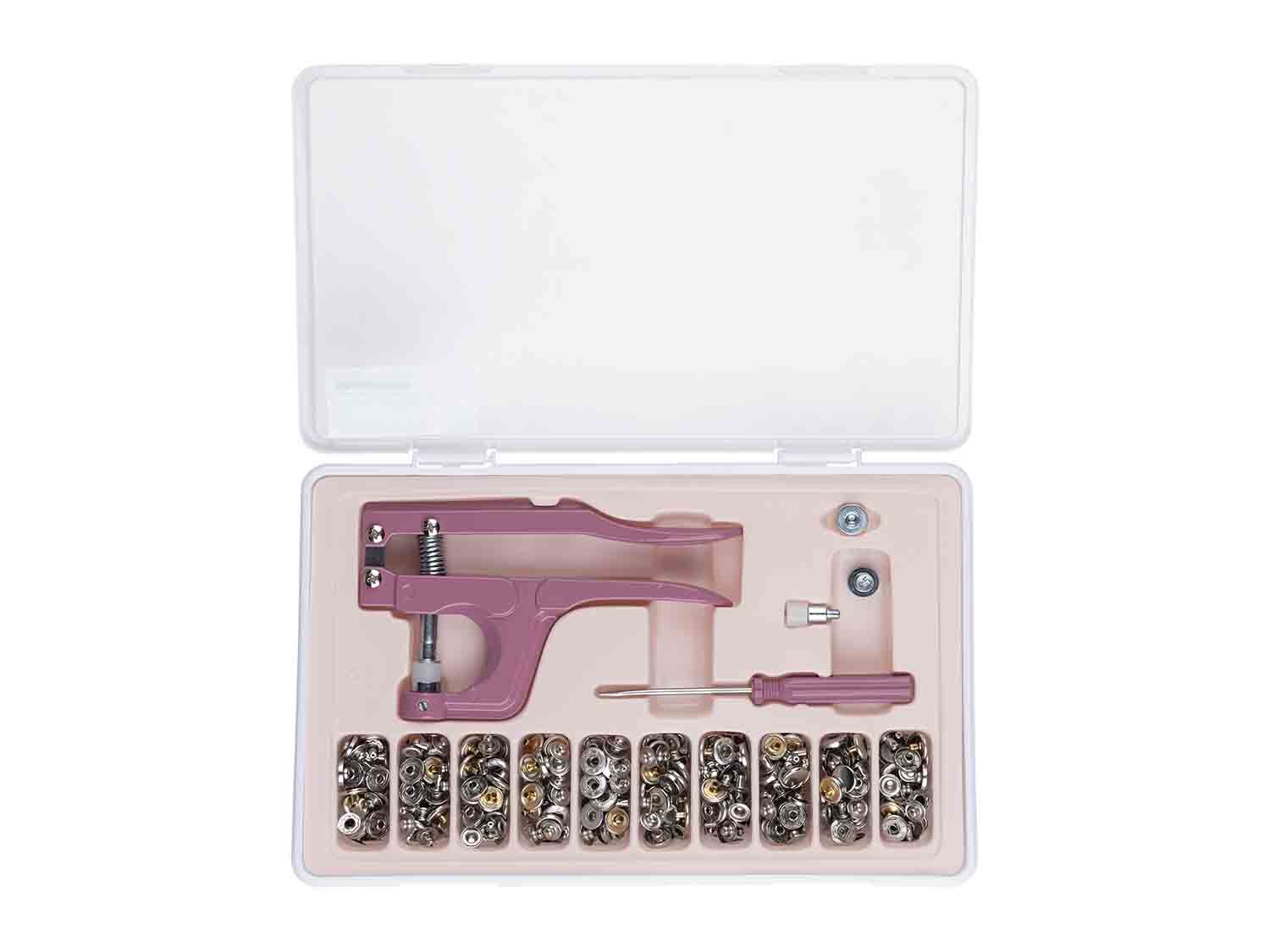Incluye también una pinza para botones a presión con accesorios intercambiables, así como un destornillador para cambiar los accesorios según sea necesario. Además, cuenta con 2 sellos para botones automáticos, uno de metal y otro de silicona, para garantizar una colocación precisa y duradera. Todo esto por solo 9,99 euros