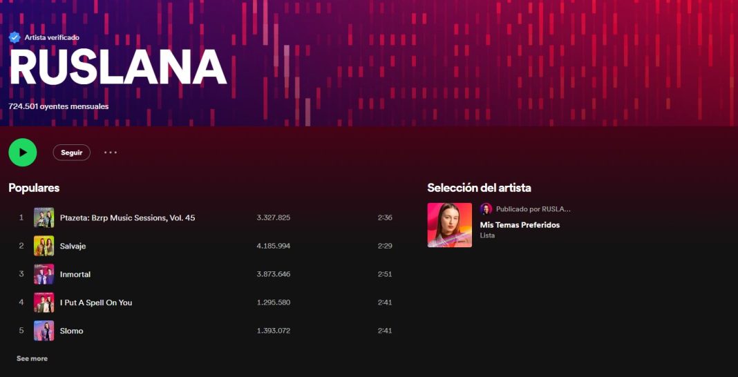 El primer tema que ha alcanzado el éxito rotundo es «Salvaje», interpretado junto a su compañera Naiara (la primera finalista). La actitud siempre ha sido el rasgo más destacado de Ruslana, y en esta actuación, que exigía precisamente eso, no defraudó. Fue un número impecable por parte de ambas, convirtiendo la canción en una sensación en la red social TikTok y acumulando un total de 3,698,524 reproducciones en Spotify.