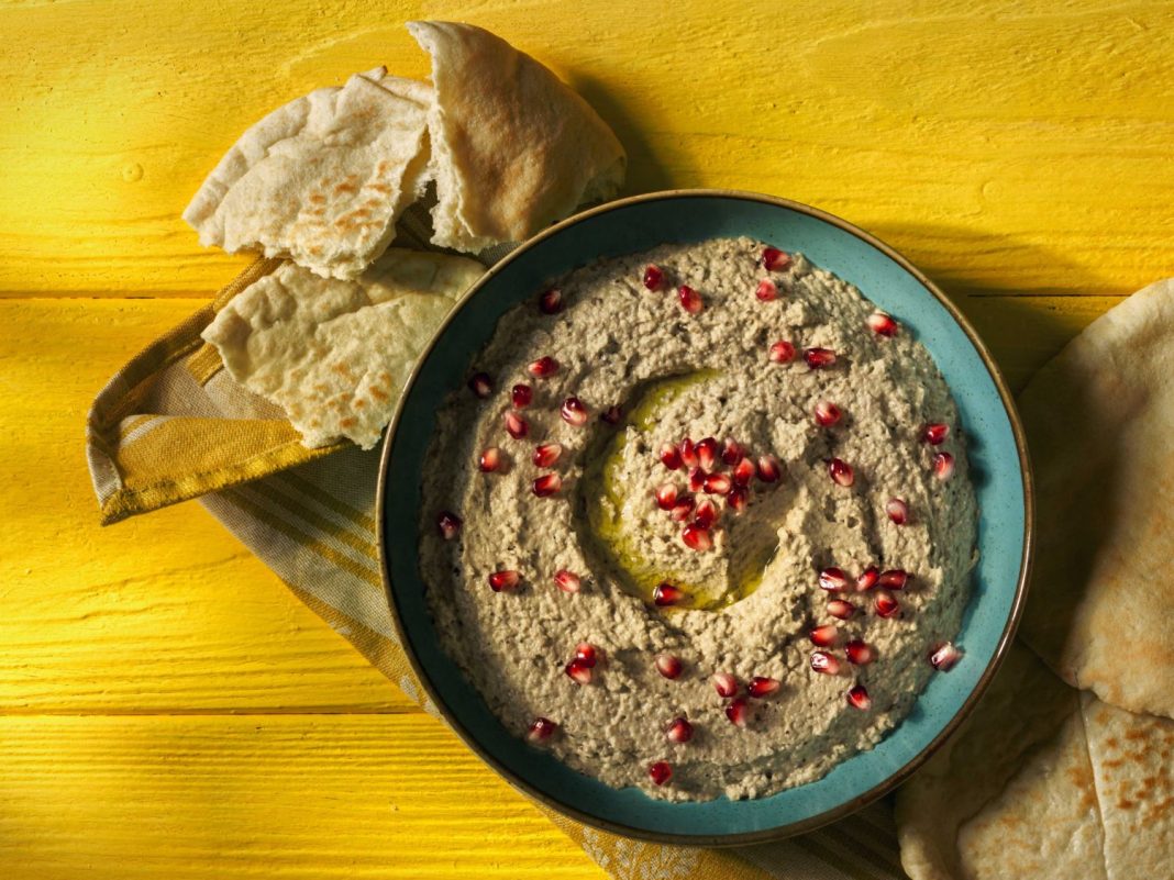 El mutabal de berenjena es una crema suave y sabrosa, perfecta para acompañar platos intensos como el Tbeet de pollo y arroz. Esta receta tradicional de Oriente Medio combina berenjenas asadas con tahini, ajo, jugo de limón y un toque de aceite de oliva, creando un equilibrio perfecto entre lo ahumado, lo cremoso y lo ácido.