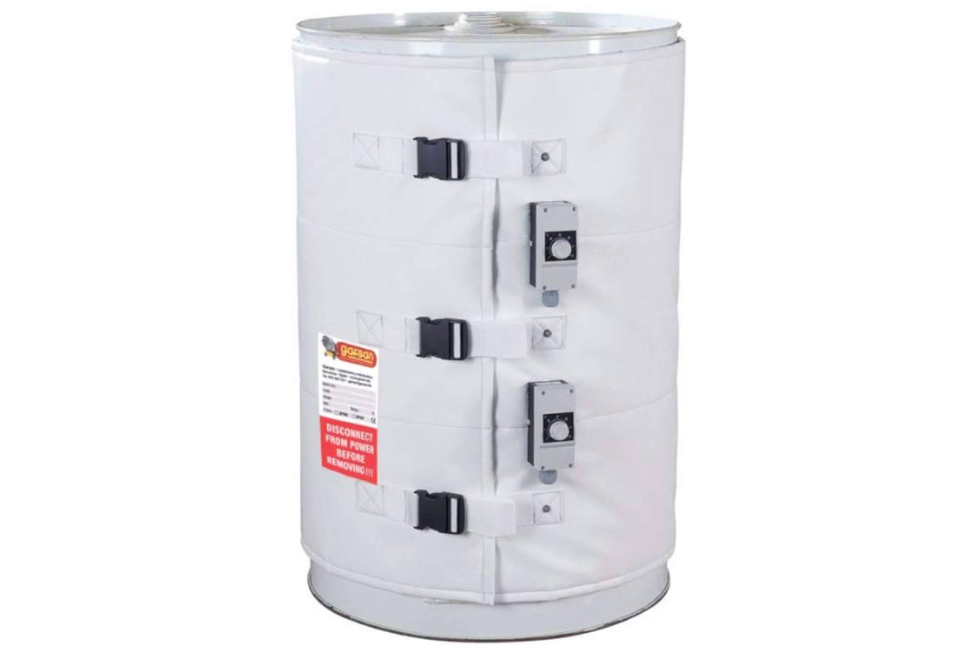 Al igual que los modelos anteriores, esta manta se puede usar en la calefacción de aceite, diésel, resina, agua u otros líquidos industriales. Otro de sus productos destacados es la funda aislante de bidones diseñada para recipientes estándar de 200 litros. Esta es ideal combinada con una base calefactora que acelera el proceso de calentamiento del contenido. Las bandas calefactoras de silicona también han sido diseñadas para estos mismos bidones. El diseño de este kit es simple y fácil de usar, viene equipado con tres bandas y un termostato de 0-120 °C.