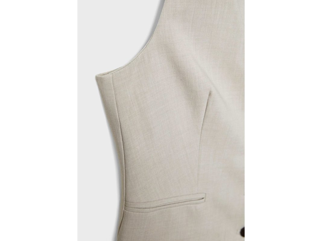 Stradivarius no deja nada al azar, y esto se refleja en los pequeños detalles que lo hacen único. Uno de estos son los falsos bolsillos de vivo en la parte delantera, que, sin ser funcionales, añaden un elemento de diseño sofisticado y un toque final que realza su apariencia. Esta atención al detalle subraya la calidad y el cuidado puesto en cada pieza.