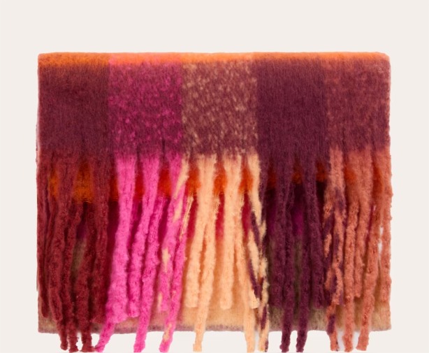 Irradia alegría y color incluso en los días más grises con esta bufanda multicolor en tonos de morado. Diseñada para aportar un pop de color a tu vestuario, esta bufanda combina la calidez necesaria para el invierno con una paleta de colores vibrantes que complementa cualquier conjunto. Su tejido suave y acogedor es perfecto para envolverse y protegerse del frío, mientras que el diseño multicolor añade versatilidad a tu armario, haciéndola fácil de combinar con diferentes looks.