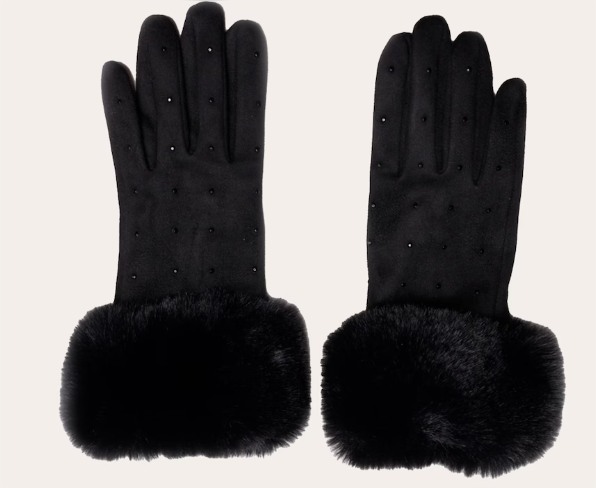 Guantes de Mujer con Pelo y Brillantes Color Negro en El Corte Inglés