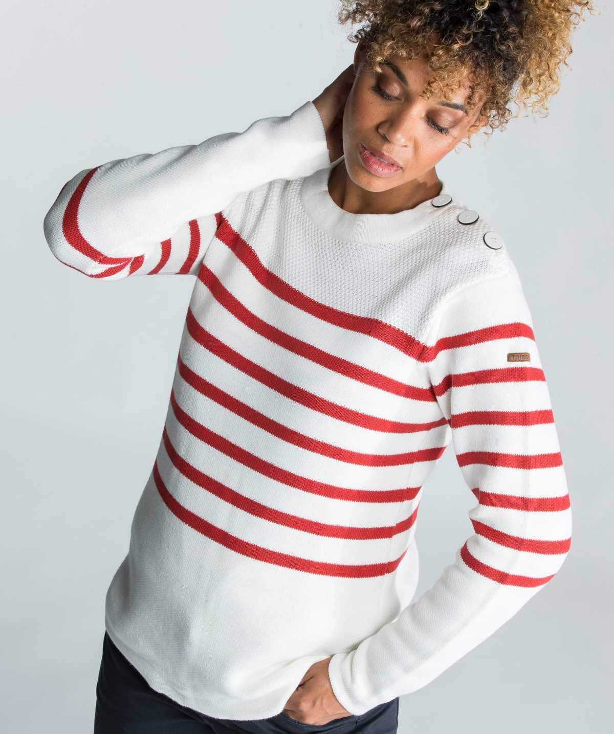 En la búsqueda de salir de la monotonía de los jerséis lisos, Decathlon presenta una auténtica joya de estilo marinero: el jersey Tribord blanco con rayas rojas. Inspirado en las clásicas camisetas marineras, este diseño elegante rompe con la rutina con su combinación de colores atemporales y su cierre de botones en uno de los hombros.