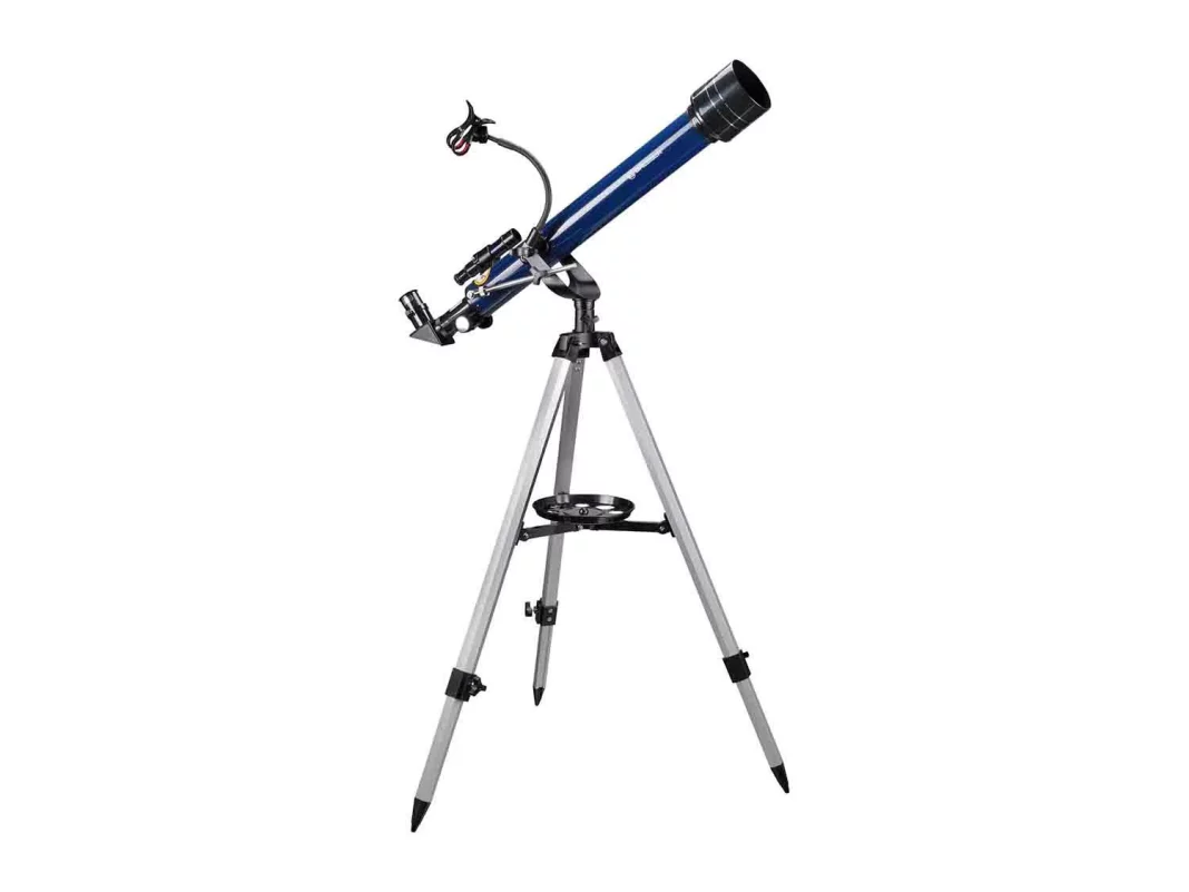 El telescopio refractor Skylux 60/700 de Bresser viene equipado con un trípode de aluminio estable y ajustable en altura. Además, cuenta con un buscador óptico 5×24 para una localización rápida de objetivos, un espejo diagonal para una observación astronómica cómoda, una lente inversa 1,5X que proporciona una imagen erecta en la observación terrestre, y una lente Barlow 3X que triplica la ampliación.
