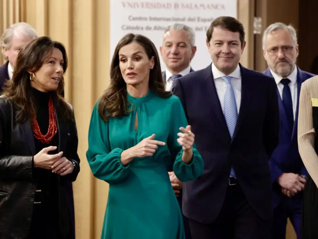 La reina Letizia de España, conocida por su elegancia y estilo impecable, recientemente se convirtió en el centro de atención durante su aparición en el acto inaugural del Princesa de Girona CongrestFest en Salamanca. Este evento no solo sirvió como plataforma para celebrar el talento en el arte, premiando a la actriz Vicky Luengo, sino que también destacó la sofisticación y el buen gusto de la consorte real. Su elección de vestuario, un deslumbrante vestido verde de la firma Dándara que estrenó durante una visita de Estado a Dinamarca hace tres meses, ha trascendido fronteras, capturando elogios y admiración no solo en España, sino también en el Reino Unido.