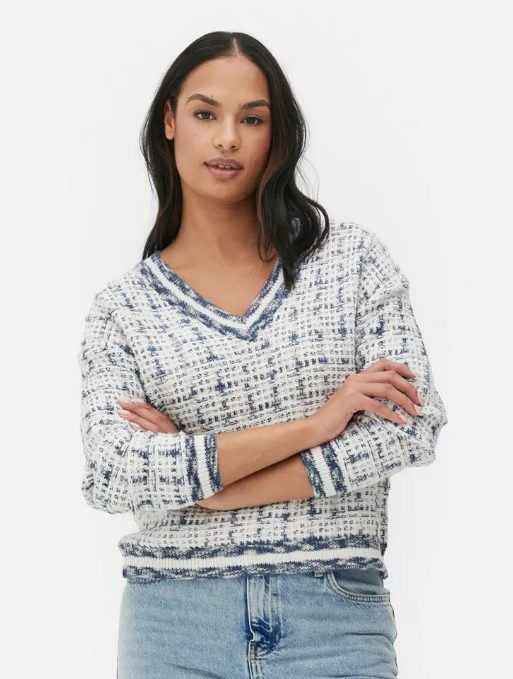 Si lo que estás buscando es un jersey especial para protegerte del frío con estilo, dentro de Primark también podrás encontrar una gran variedad de opciones para todos los gustos. Una de las que más llaman la atención es este jersey de efecto tweed con cuello en pico, uno de los más favorecedores. Disponible en una atractiva combinación de tonos azules y blancos, lo mejor es que también podrás combinarlo con distintas prendas para crear decenas de looks. En cuanto a su precio, te puedes hacer ya con él por solo 17 euros. Otra inversión de lo más interesante.