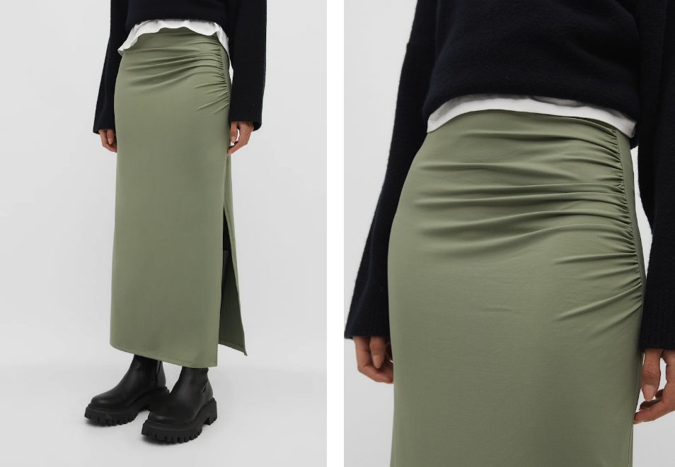 2Falda midi con frunce, un básico para ponerte a diario