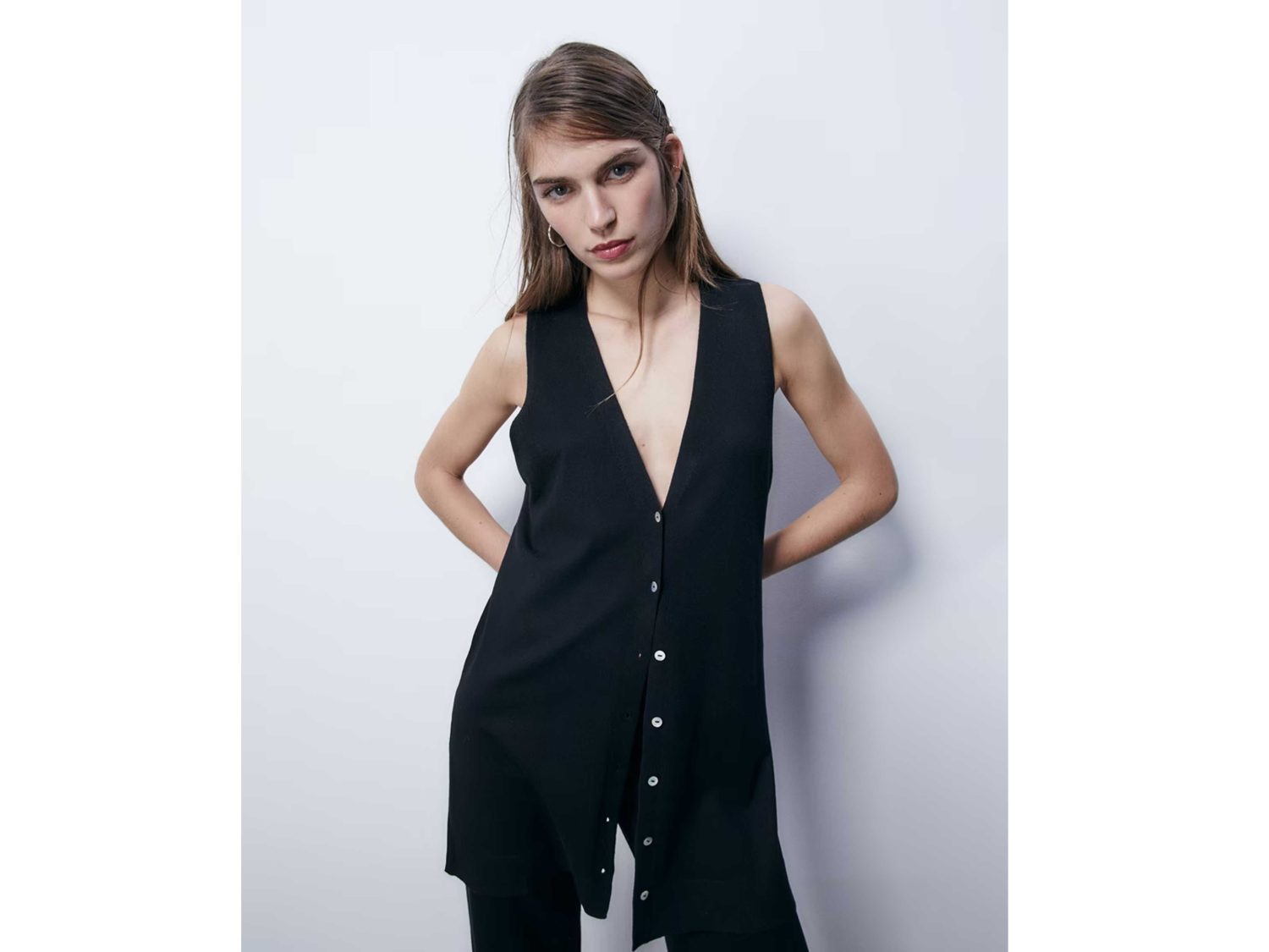 El chaleco largo sin mangas con botones se posiciona como una pieza clásica y esencial en cualquier armario, gracias a su versatilidad y estilo atemporal. Disponible en El Corte Inglés, este modelo se ofrece en dos colores neutros y elegantes: negro y marrón, lo que permite una fácil integración con una amplia gama de atuendos, desde los más casuales hasta los más formales. Su diseño sin mangas y con botones añade un toque de sofisticación y modernidad, permitiendo múltiples combinaciones, ya sea como capa sobre camisas de manga larga para un look de oficina o sobre camisetas para un estilo más relajado y urbano.
