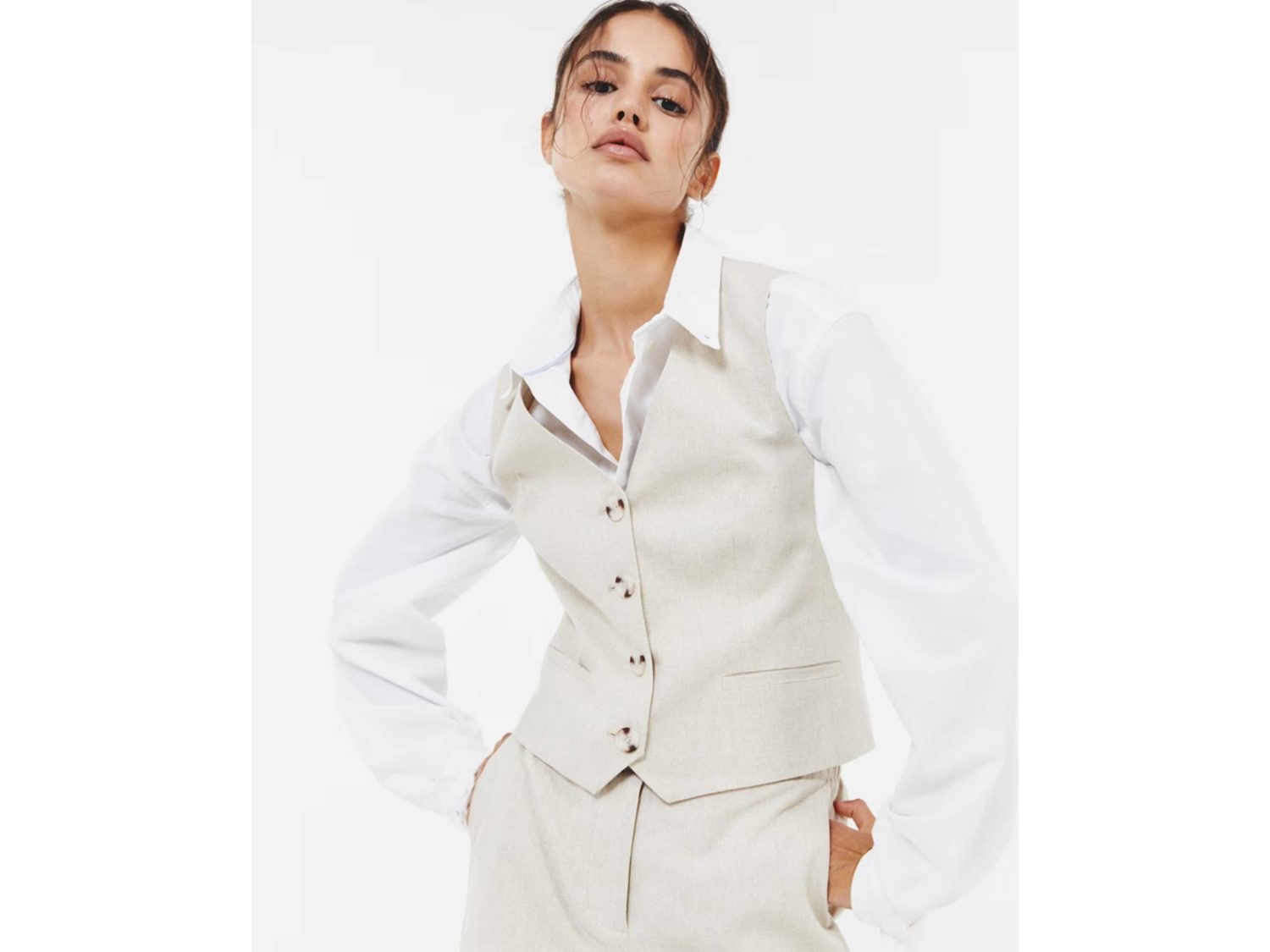 El Chaleco de botones de lino tipo sastre, ofrecido por Sfera en El Corte Inglés, redefine la elegancia con su diseño y materialidad, ideal para la temporada de primavera y verano. Este chaleco, con un precio de 25,99 euros y disponible en un versátil color beige, es la personificación de la sofisticación, diseñado para complementar a la perfección con pantalones a juego y crear un conjunto sastre de alta elegancia. Su confección en lino no solo asegura comodidad y frescura durante los días más cálidos, sino que también aporta una textura rica y un aspecto pulido a cualquier atuendo.