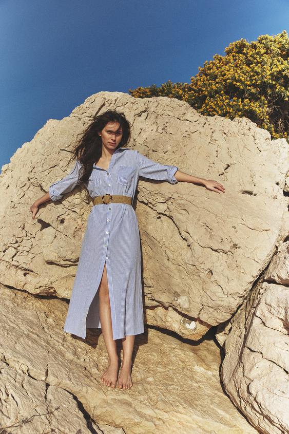 Vestido camisero cinturón Zara