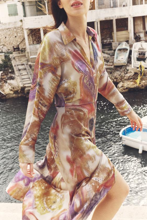 Vestido satinado estampado difuminado Zara