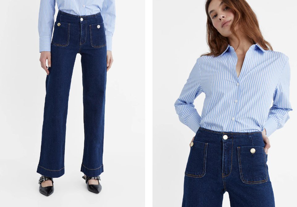 La camisa asimétrica, sin embargo, no es la única prenda que querrás llevarte de entre las novedades de Stradivarius. Si estás buscando un pantalón efectivo capaz de realzar tu figura y que siempre quede bien, estos jeans minimal con bolsillos de la tienda serán todo lo que necesites en la nueva temporada. Disponibles en el color azul oscuro más elegante, destacan gracias a su acabado ancho en la parte de abajo, por su talle alto, así como por sus botones y bolsillos, que funcionan como adornos. En cuanto a su precio, los puedes conseguir ya por tan solo 29,99 euros. Sin duda, será una de esas inversiones que merecen la pena.
