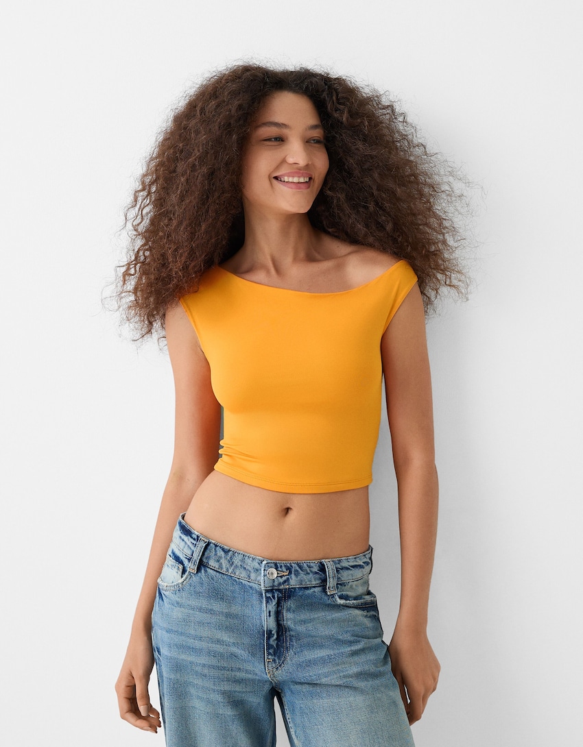 La primavera llama la atención porque empezamos a ver prendas de tonos vitamina que levantan el ánimo cada día. Un buen ejemplo de ello lo encontrarás en esta camiseta ajustada ya disponible en Bershka. Disponible en colores como el naranja, muy favorecedor, así como en otros neutros, como el blanco o el negro, querrás incluirla en tus looks gracias a su acabado asimétrico, capaz de quedar bien con todo. Si hablamos de su precio, la puedes conseguir ya en la sección de novedades de la tienda por tan solo 9,99 euros. No te la querrás quitar ni cuando llegue el verano.