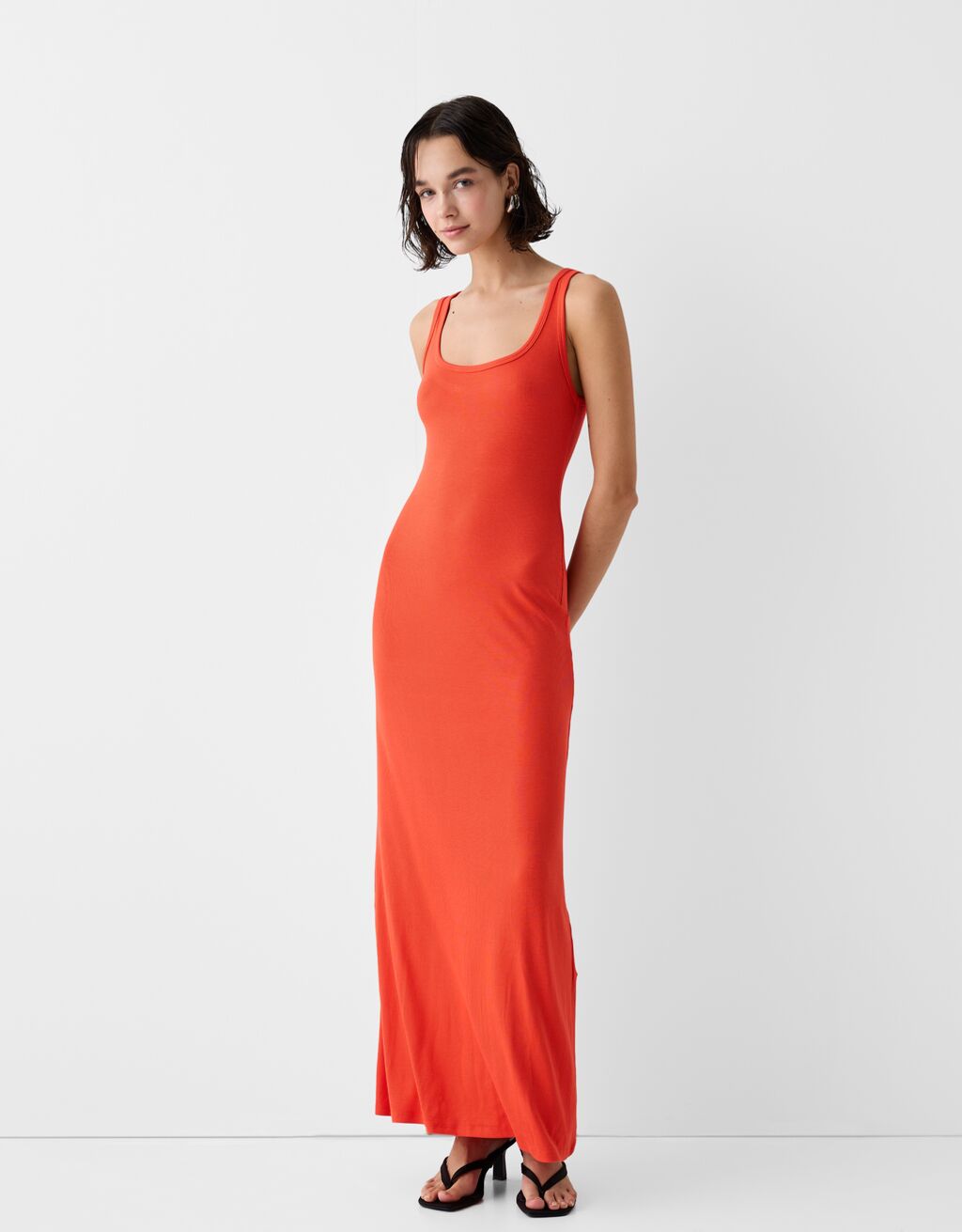 Por último, si estás buscando una prenda con la que construir un look llamativo, pero muy cómodo, una de las opciones que no querrás dejar escapar es este vestido largo de Bershka. De diseño rib y con tirantes, llama la atención gracias a detalles como su escote redondo, así como por estar disponible en tonos tan llamativos como este naranja. Además, te podrás hacer con él también en gris y negro, aptos para combinar con todo. Si hablamos de su precio, lo puedes conseguir ya por solo 15,99 euros. De nuevo, una inversión increíble.