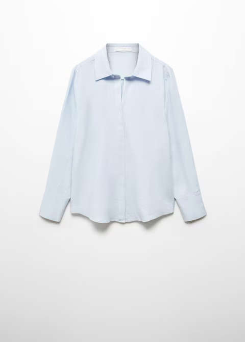 El blanco no siempre es el favorito de los clásicos. Otro de los tonos que no pueden faltar en tu armario si hablamos de camisas funcionales y aptas para el día a día es el azul claro. En este caso, en Mango destaca esta camisa de lino, ideal para incluirla en tu fondo de armario, que puedes combinar con cualquier otra prenda para crear looks de oficina llenos de glamour. En cuanto a su precio, te puedes hacer con ella por solo 35,99 euros. Además, la encuentras también en blanco y negro, otros dos clásicos infalibles.