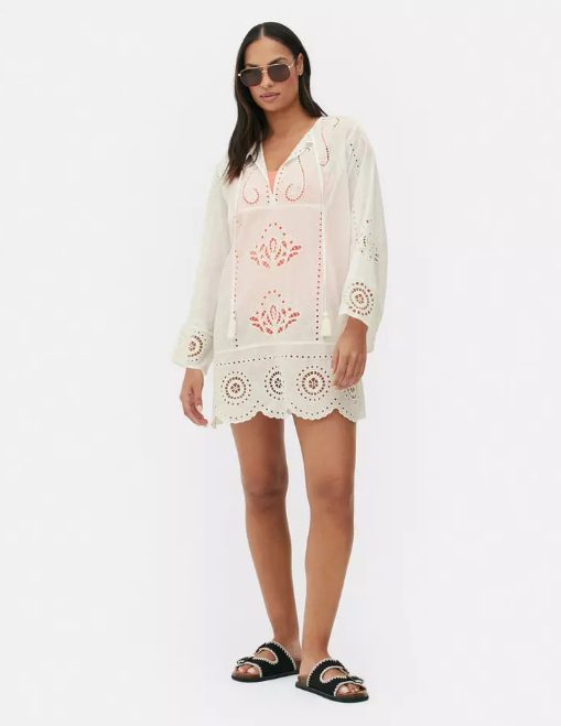 Este vestido de Primark sorprende gracias a su calidad y múltiples detalles. De primeras, parece un diseño elaborado a mano, con todas las ventajas que eso supone en materia de moda. Además, es fresco, delicado y destaca gracias a aspectos como su bordado inglés, capaz de llamar la atención de cualquiera. Se trata de una prenda de corte recto y muy amplia para que puedas andar con total comodidad. De falda corta, llama la atención gracias a la delicadeza de su caída, así como por su bajo con acabado redondeado capaz de añadir ese toque natural y elegante que no puede faltar en tus vestidos veraniegos.