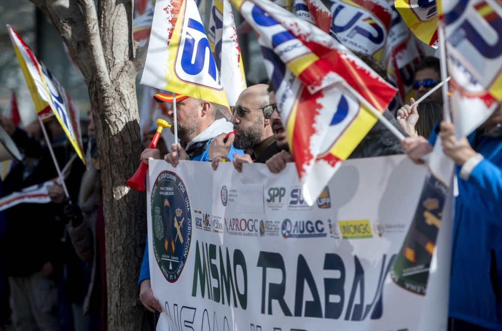 En concreto, la Policía Nacional sigue manteniendo unas condiciones económicas, salariales y de jubilación peores que las de los Mossos o la Ertzaintza que siguen cobrando en las nóminas unos 500 euros más que los agentes de la Policía Nacional. En el caso de las jubilaciones, la diferencia todavía es más notable, pues los policías autonómicos se jubilan de forma anticipada, a los 59 años, y sin pérdida de poder adquisitivo, mientras que un policía nacional o un guardia civil no puede disfrutar de estas condiciones de jubilación anticipada y además tiene una merma en las retribuciones que percibe en su jubilación.