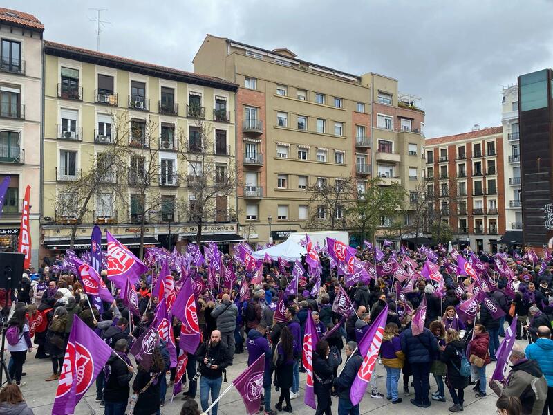 Por su parte, la secretaria de mujeres, igualdad y condiciones de trabajo de CCOO, Carolina Vidal, ha dicho que «hoy Madrid va a salir de nuevo a las calles, a teñir de marea violeta, de marea morada, las calles de Madrid para decir que las mujeres» sufren «discriminaciones estructurales por el hecho de ser mujeres».