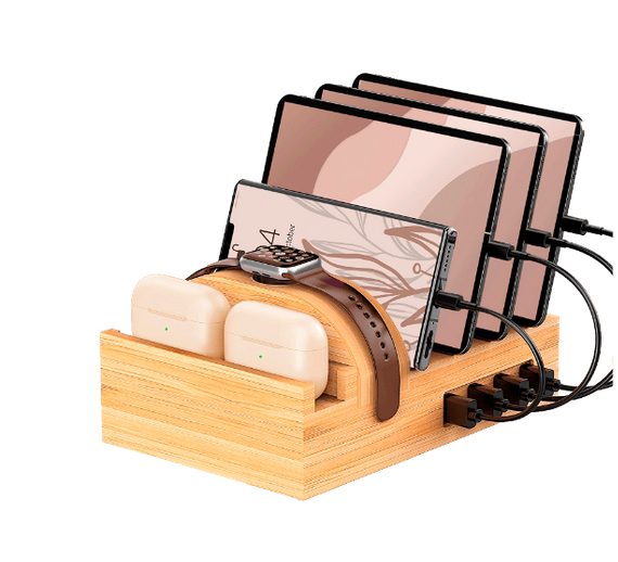 La estación de carga de bambú de Aldi es un gadget original que te ayudará a mantener todos tus dispositivos organizados mientras se cargan, utilizando solo un enchufe. Con un tamaño de 19,9 x 13,5 x 9 cm, es compacta y cabe fácilmente en tu espacio de trabajo o mesa de noche.