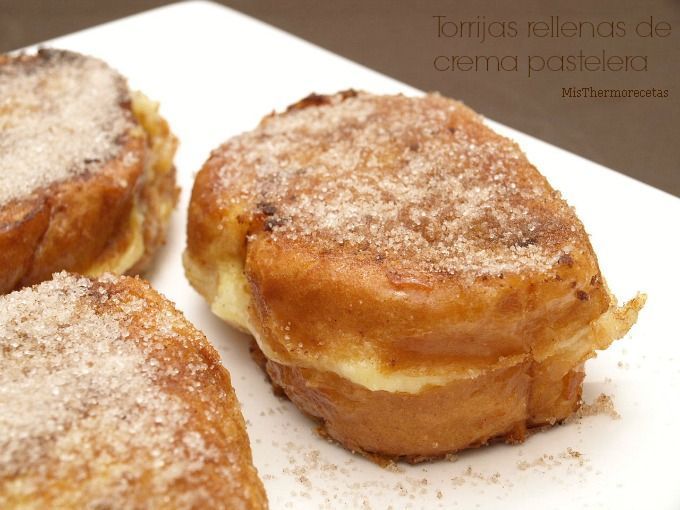Toma dos rebanadas de pan y pon una cucharada de crema pastelera en una de ellas. Puedes distribuir la crema pastelera uniformemente sobre la rebanada o dejar un pequeño margen en los bordes para evitar que se salga al presionar. Coloca la otra rebanada de pan encima de la que tiene la crema pastelera, formando un sándwich. Asegúrate de que las rebanadas estén bien selladas para que la crema no se escape durante el proceso de cocción.