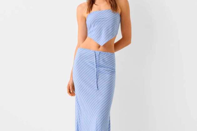 2Descubre el toque primaveral con la irresistible falda midi de rayas de Bershka por 22,99 euros