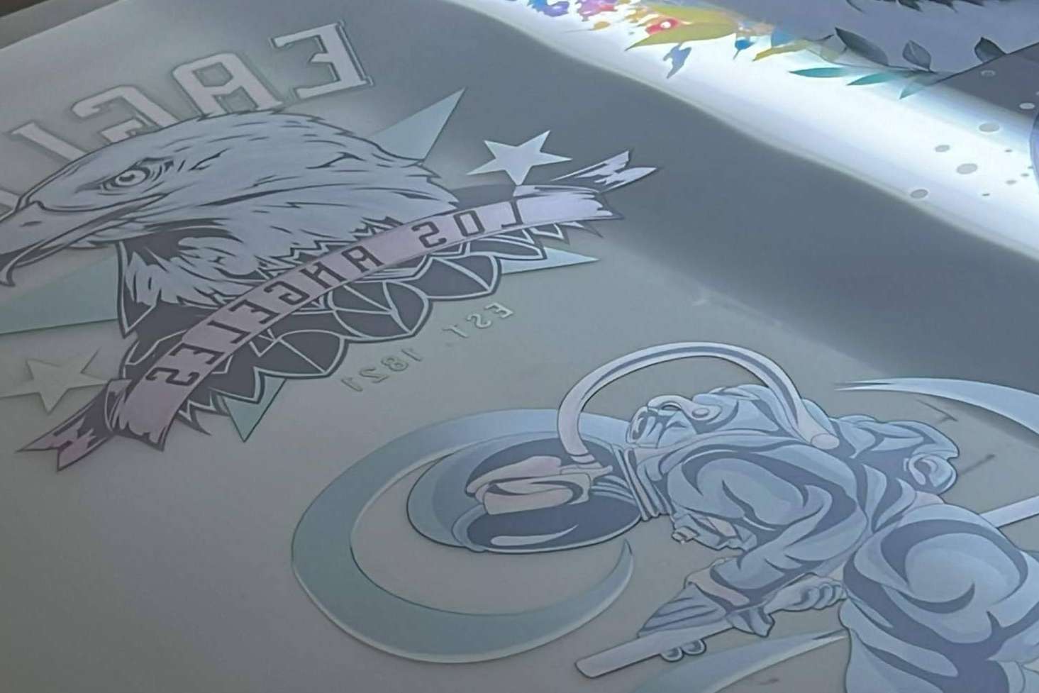 El proceso implica imprimir en efecto espejo empleando un papel de absorción de tinta, aplicar CMYK y una tinta transparente. Después, se lleva a cabo el presecado para, finalmente, aplicar el polvo adhesivo con pigmento blanco. De esto se obtiene un resultado final brillante y vívido.