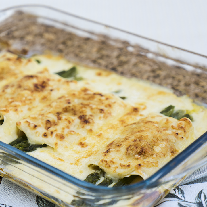 - Retira los canelones del horno y deja reposar unos minutos antes de servir.