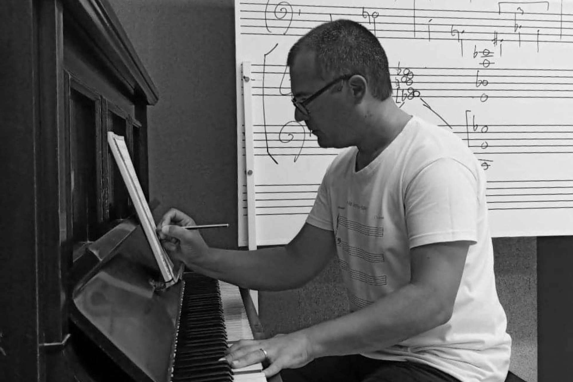 Con Fedor Veselov, el pianista intérprete, se entendieron enseguida. «Le encantó la primera obra. Nos hemos visto, hemos quedado a menudo (bueno, no tanto, no siempre disponemos de todo el tiempo que quisiéramos), tenemos una visión parecida de lo que es el arte, cómo se debe interpretar… A veces incluso me sorprende la manera que tiene de interpretar. Es bonito ver cómo alguien aporta cosas sobre la base de lo que has hecho. Naturalmente, el intérprete debe poner su parte para superar la «frialdad» de la partitura. El compositor a menudo se pierde en armonías, resonancias, disonancias … Y es el intérprete el que desde fuera tiene que encontrar la expresividad. Yo a veces pasaría de apuntar dinámicas, ligaduras… Y dejaría que las eligiera el intérprete.» David ha compuesto sobre todo para cámaras, coplas y orquesta, y ha pasado por muchos tipos de agrupaciones e instrumentos (curiosamente, ha creado poco para piano).