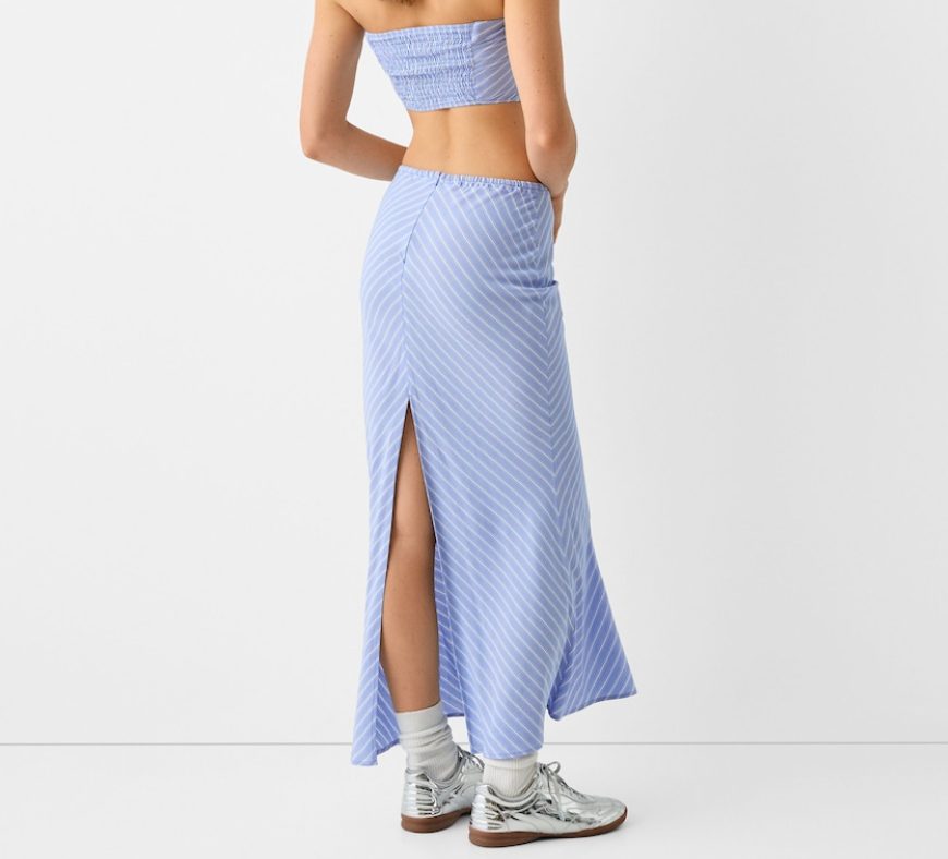 ¿La has visto? Descubre la falda midi a rayas de Bershka ideal para el verano y otras novedades increíbles.